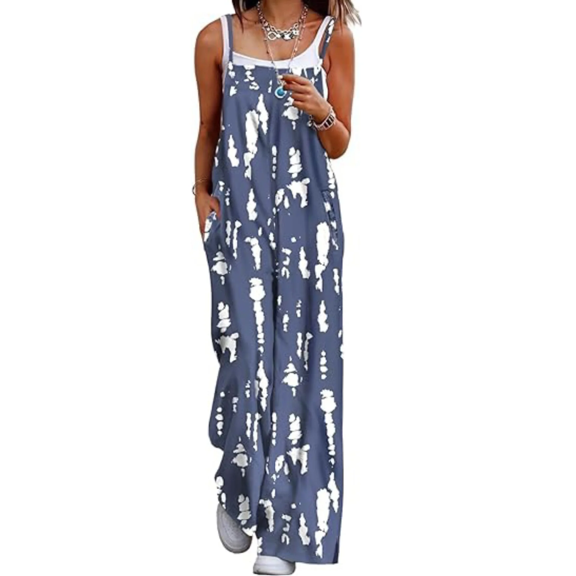 Bohemian Women's Floral Print Romper Loose Fit Wide Leg Jumpsuit with Side Pockets Knitted Breathable Casual Style for Summer